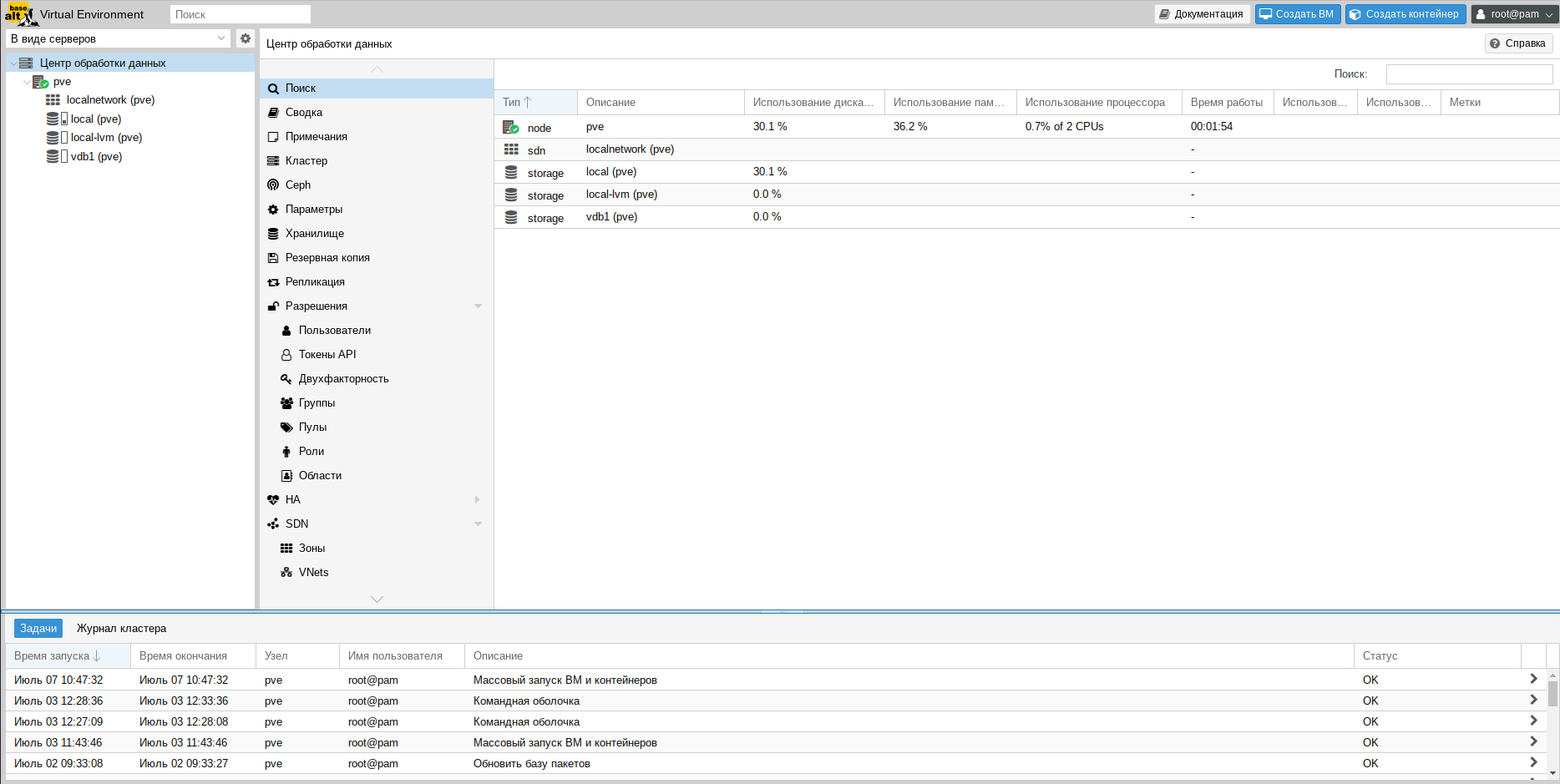 предназначенная для централизованного управления виртуальными машинами (VM на базе KVM/QEMU), контейнерами (LXC), кластерной инфраструктурой, сетями и